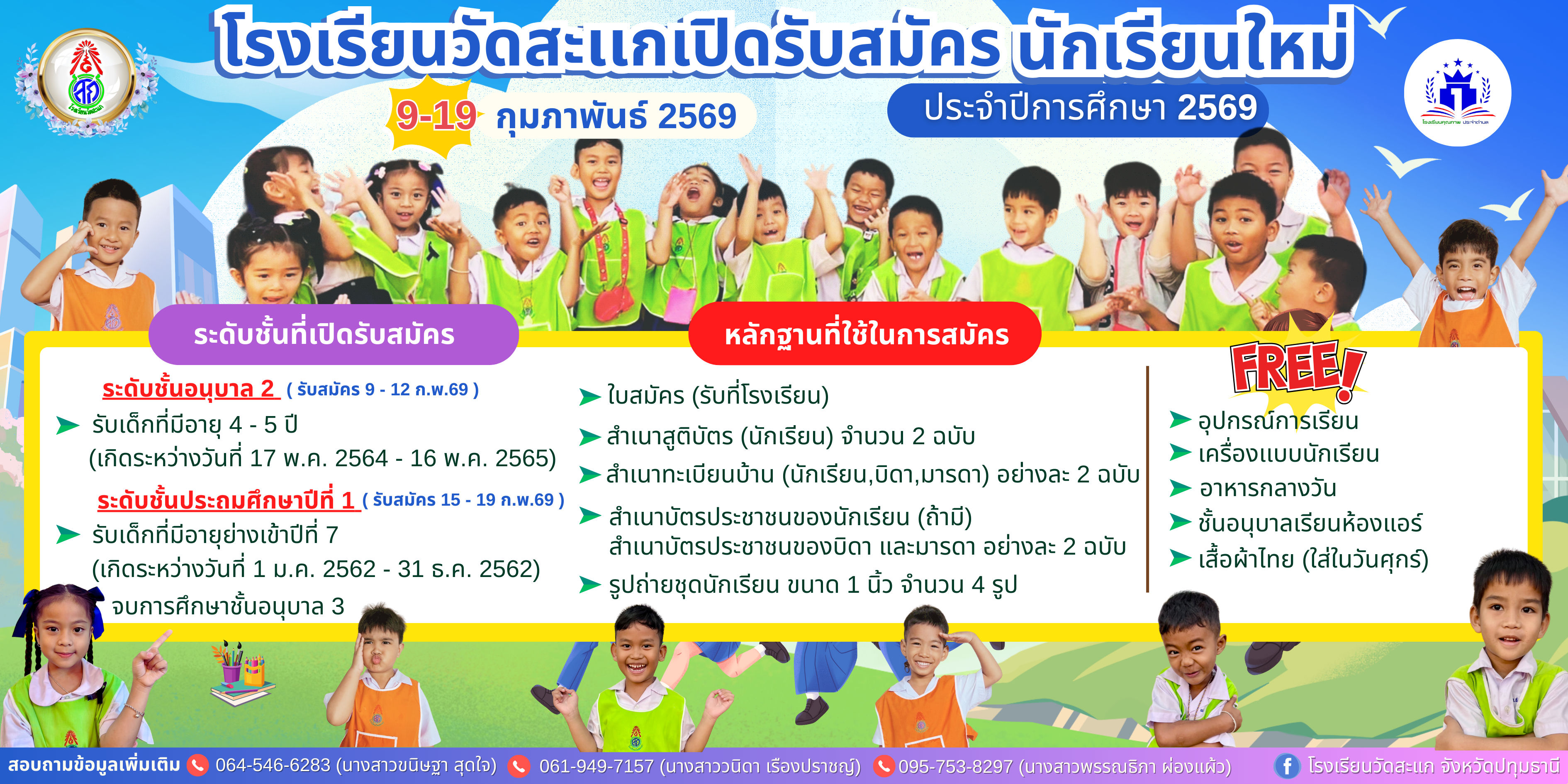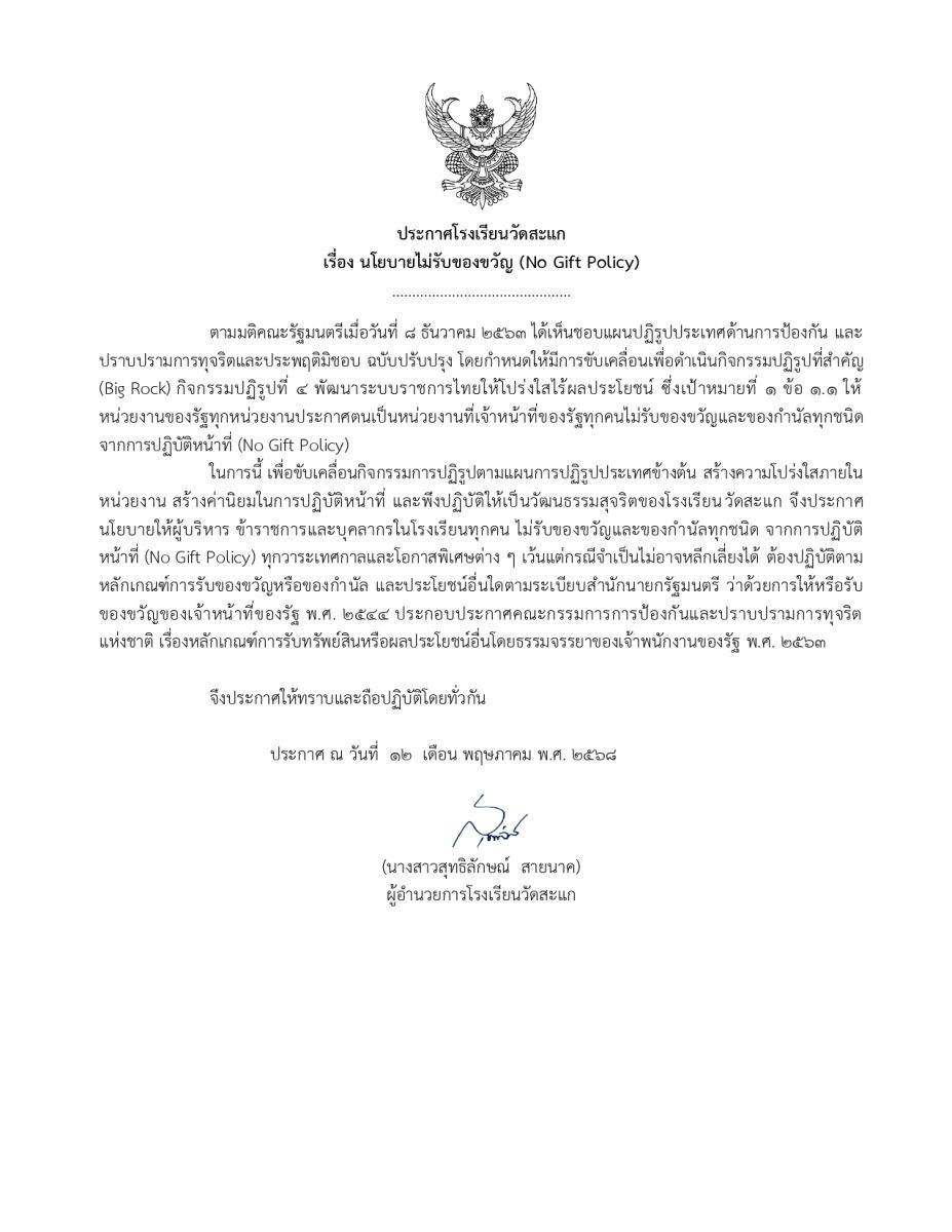 โรงเรียนวัดสะแกขอขอบพระคุณ พระมหาจักรี จนฺทวณฺโณ เลขานุการเจ้าคณะอำเภอสามโคก วัดตำหนัก พระปลัด วิรัตน์ วิปุโล เจ้าอาวาส วัดดอกไม้ พระใบฎีกาวัชรพงษ์ อาริโย เจ้าอาวาสวัดสามโคก พระสมุห์อรรถพล อนุจารี เจ 12 ม.ค. 69