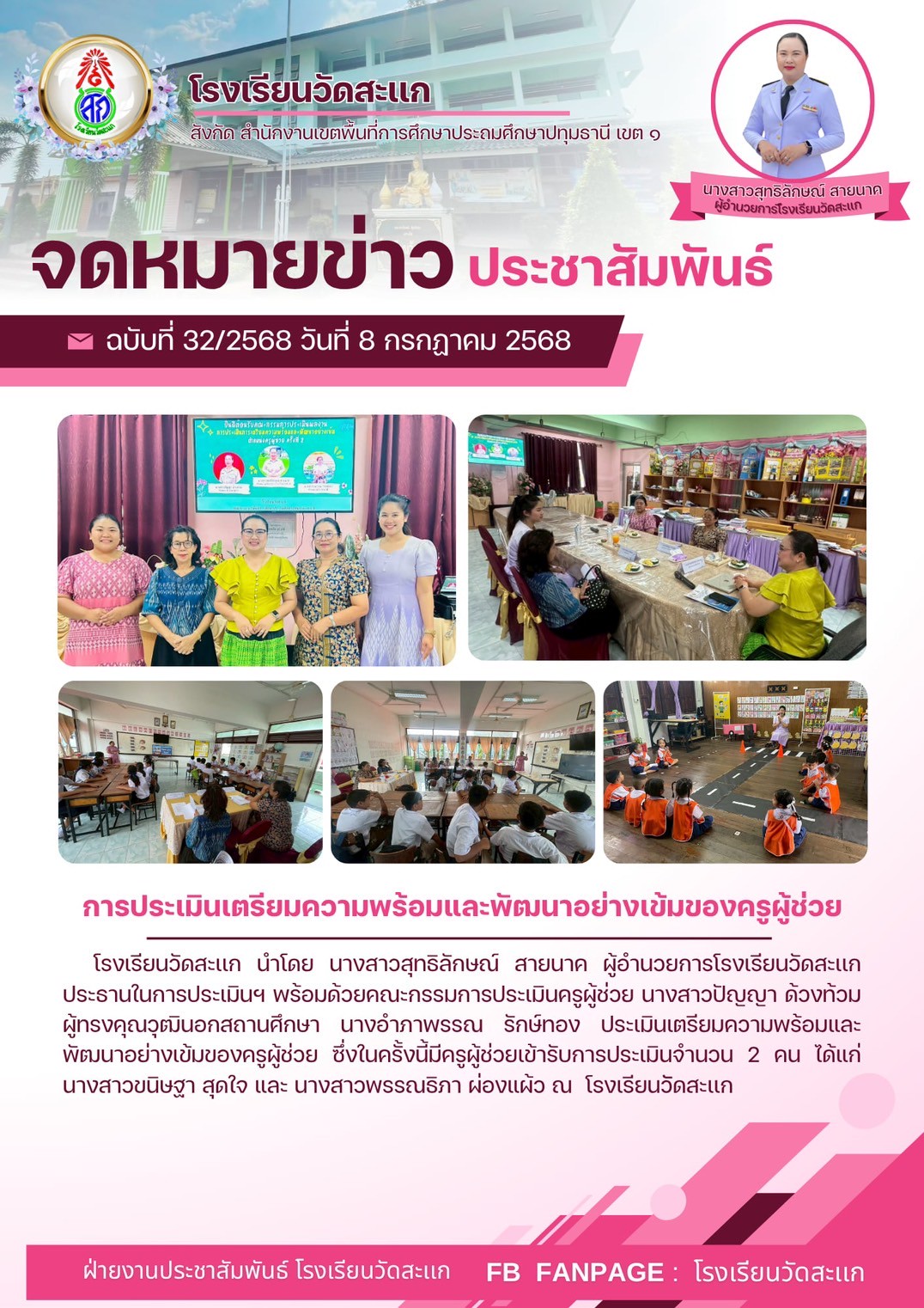 • ประกาศรับสมัครนักเรียนใหม่ โรงเรียนวัดสะแก ประจำปีการศึกษา 2569