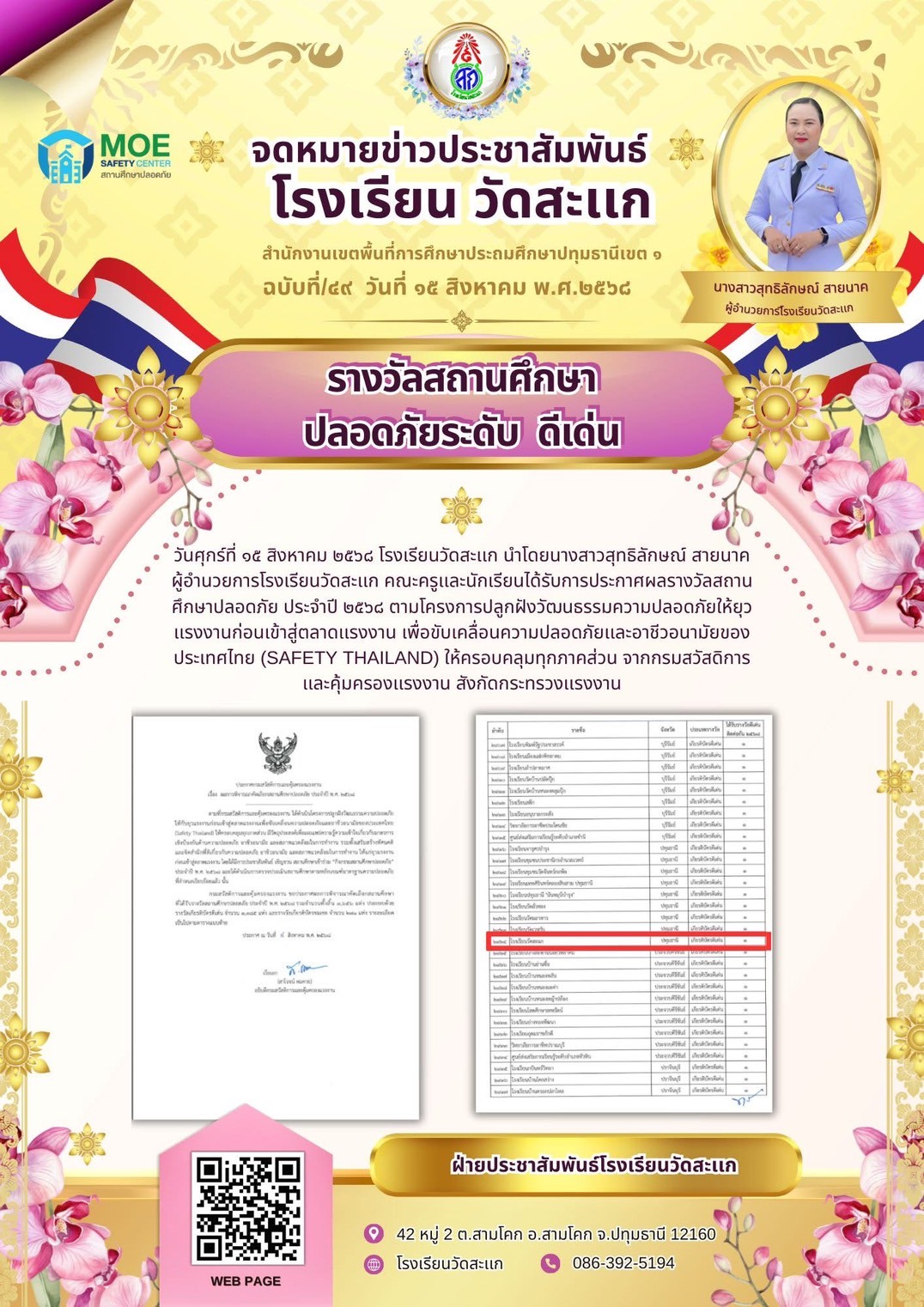 การประกาศผลรางวัลสถานศึกษาปลอดภัย ประจำปี ๒๕๖๘