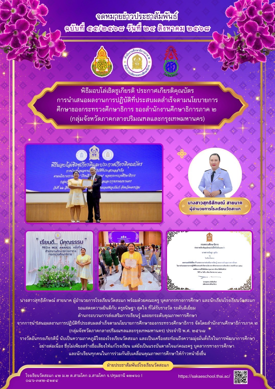 ขอแสดงความยินดีกับ ครูขนิษฐา สุดใจ ที่ได้รับรางวัล ระดับดีเยี่ยม ด้านกระบวนการส่งเสริมการเรียนรู้ และยกระดับคุณภาพการศึกษา จากการนำเสนอผลงานการปฏิบัติที่ประสบผลสำเร็จ