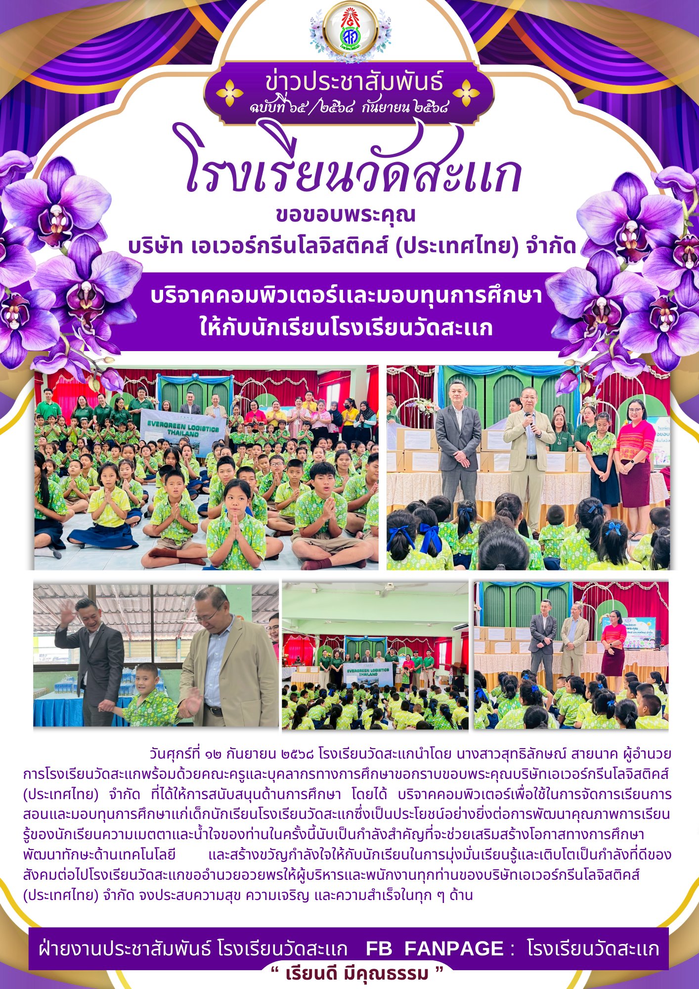 โรงเรียนวัดสะแก ขอขอบพระคุณ