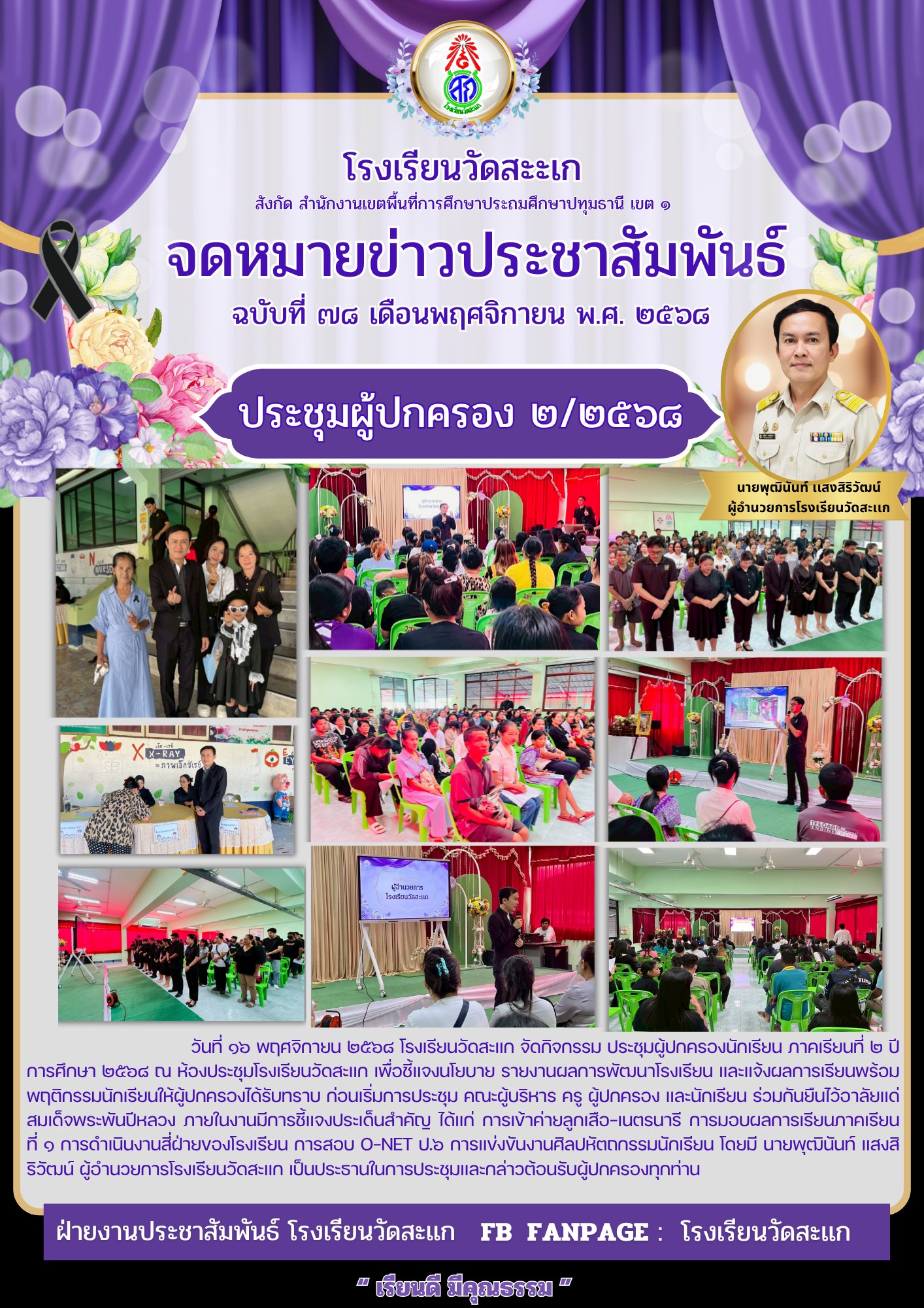 โรงเรียนวัดสะแก จัดกิจกรรม ประชุมผู้ปกครองนักเรียน ภาคเรียนที่ 2 ปีการศึกษา 2568 ณ หอประชุมโรงเรียนวัดสะแก เพื่อชี้แจงนโยบายของโรงเรียน
