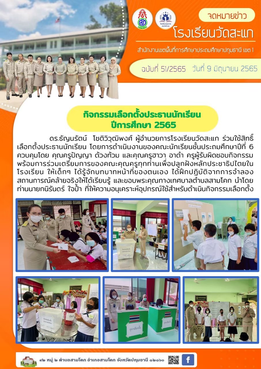 กิจกรรมเลือกตั้งประธานนักเรียน ปีการศึกษา 2565