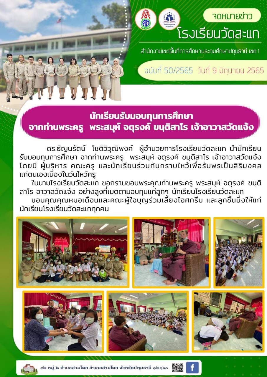 นักเรียนรับมอบทุนการศึกษา ประจำปี2565