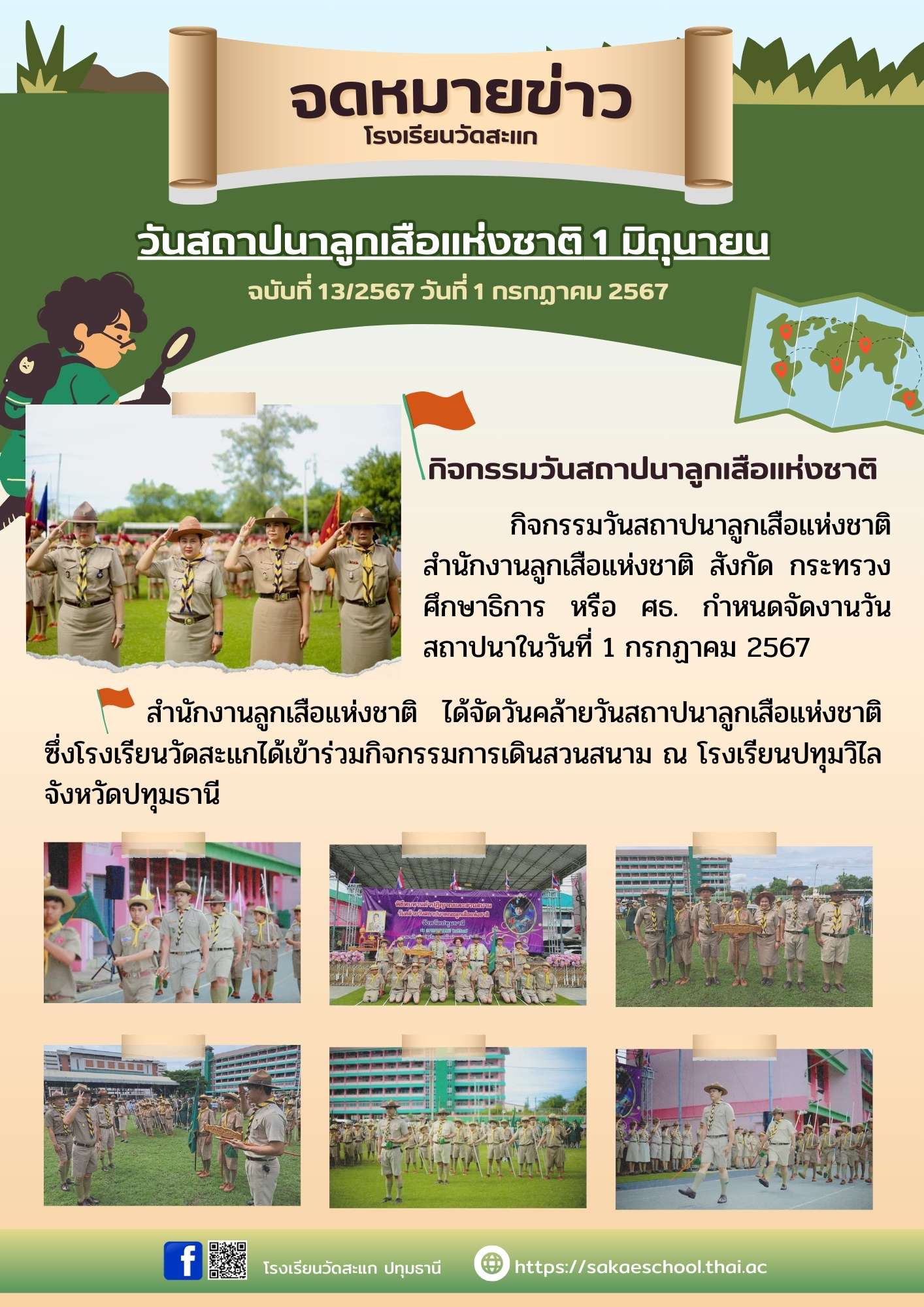 กิจกรรมวันสถาปนาลูกเสือแห่งชาติ สำนักงานลูกเสือแห่งชาติ สังกัด กระทรวงศึกษาธิการ หรือ ศธ. กำหนดจัดงานวันสถาปนาในวันที่ 1 กรกฏาคม 2567