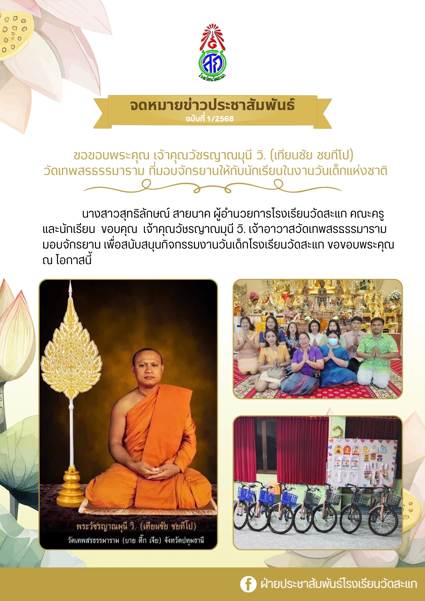 • ประกาศรับสมัครนักเรียนใหม่ โรงเรียนวัดสะแก ประจำปีการศึกษา 2569