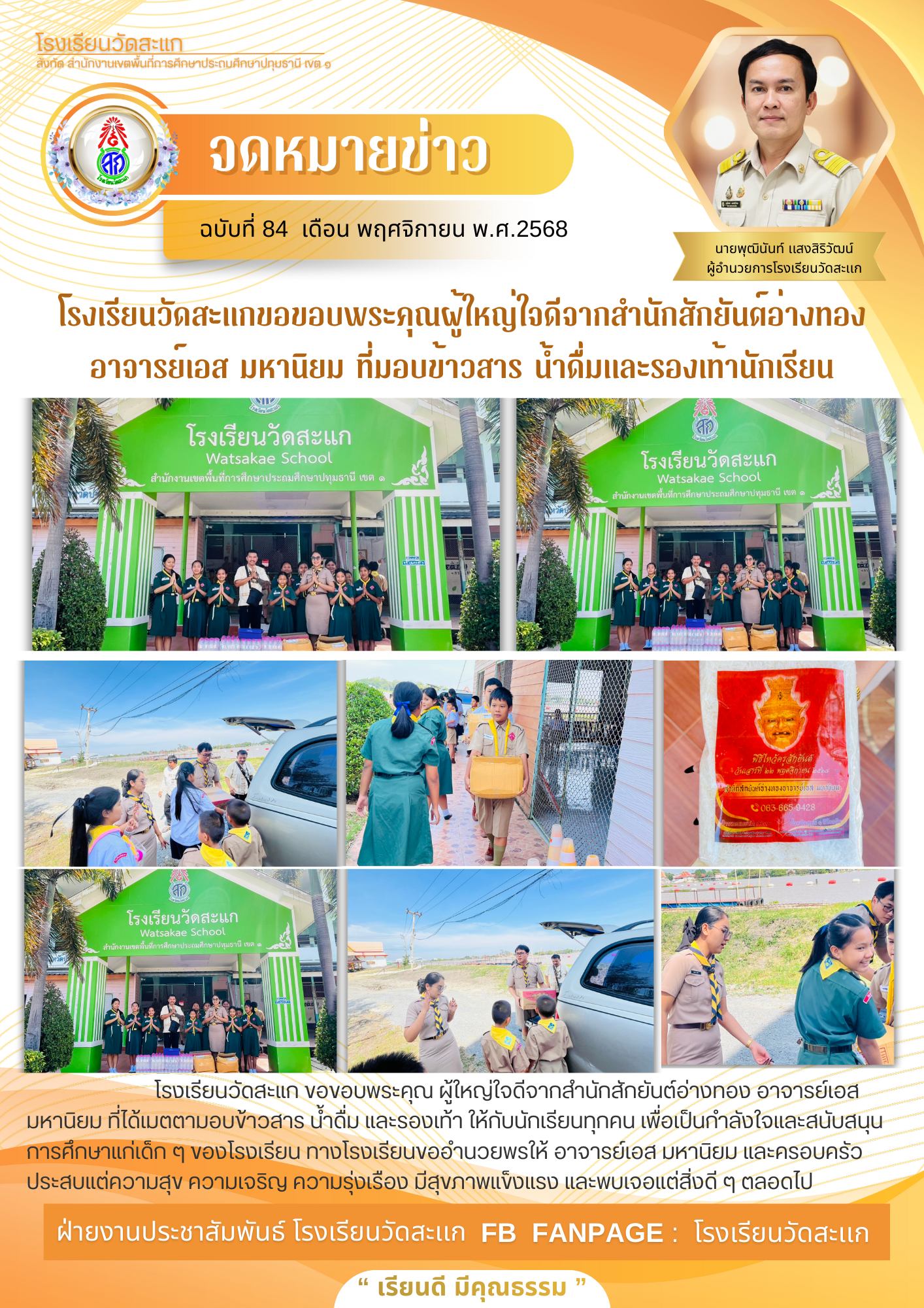 ประกาศรับสมัครนักเรียนใหม่ โรงเรียนวัดสะแก ประจำปีการศึกษา 2569