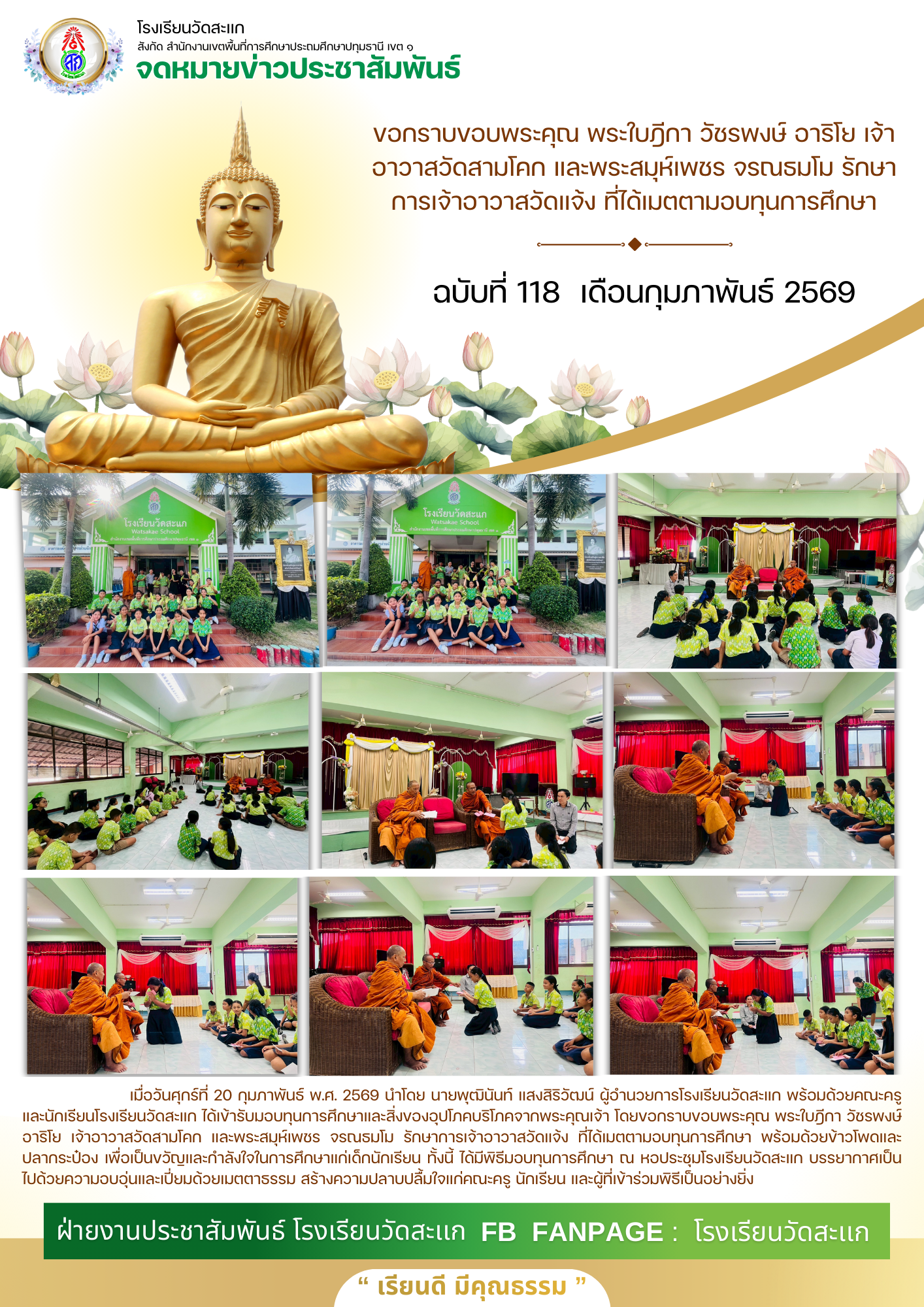 ขอกราบขอบพระคุณ พระใบฎีกา วัชรพงษ์ อาริโย เจ้าอาวาสวัดสามโคก และพระสมุห์เพชร จรณธมโม รักษาการเจ้าอาวาสวัดแจ้ง ที่ได้เมตตามอบทุนการศึกษา