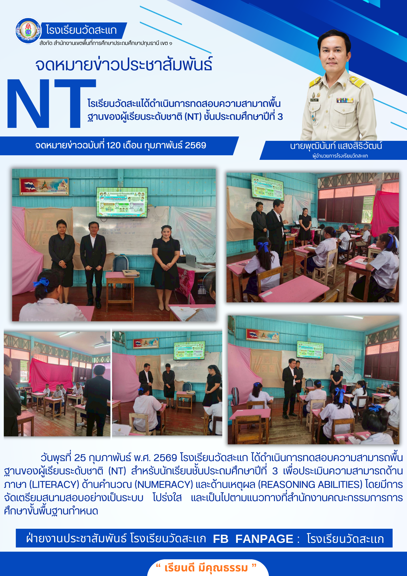 โรเรียนวัดสะเเได้ดำเนินการทดสอบความสามาถพื้นฐานของผู้เรียนระดับชาติ (NT) ชั้นประถมศึกษาปีที่ 3