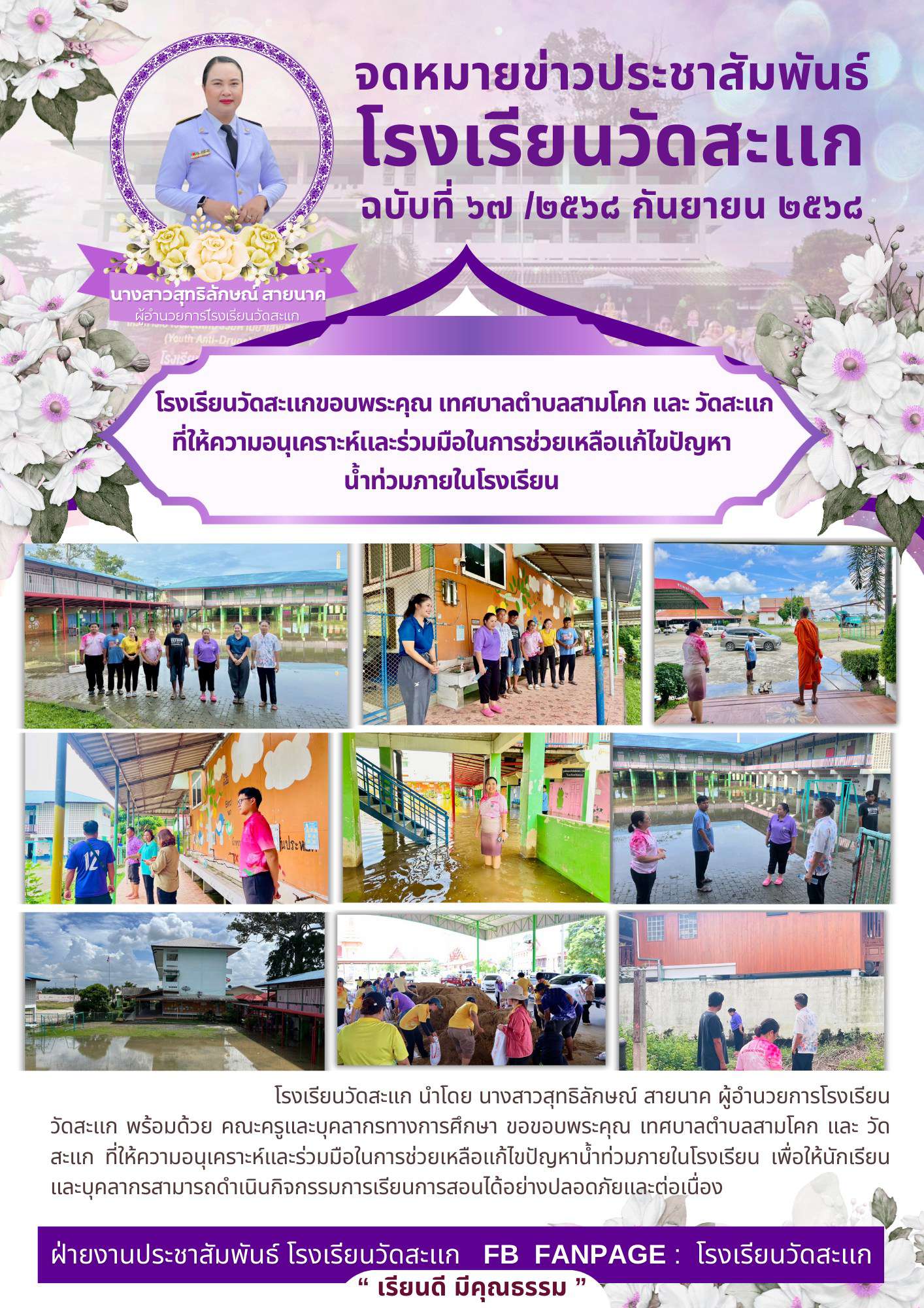 ที่ให้ความอนุเคราะห์และร่วมมือในการช่วยเหลือแก้ไขปัญหาน้ำท่วมภายในโรงเรียน
