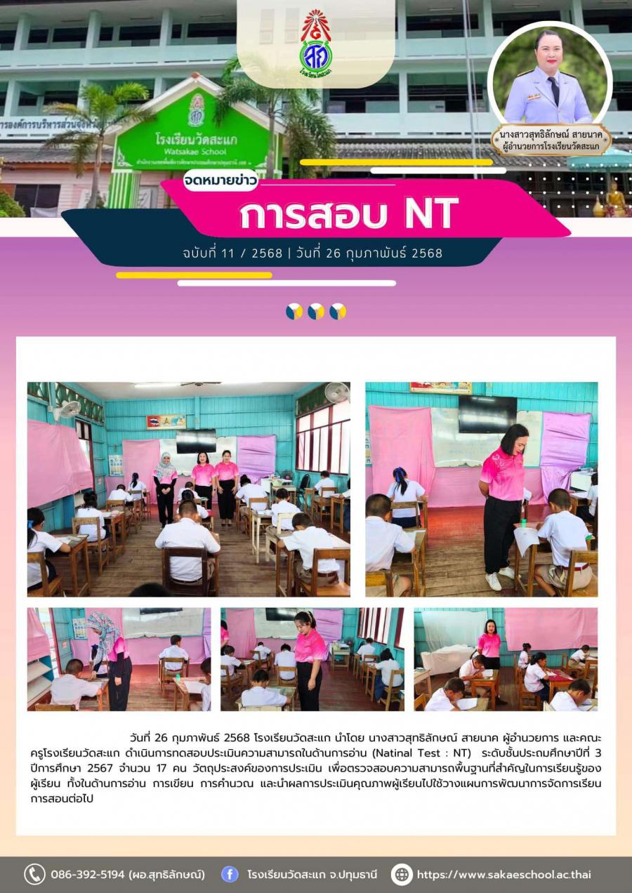 วันที่ 26 กุมภาพันธ์ 2568 โรงเรียนวัดสะแก นำโดย นางสาวสุทธิลักษณ์ สายนาค ผู้อำนวยการ และคณะครูโรงเรียนวัดสะแก ดำเนินการทดสอบประเมินความสามารถในด้านการอ่าน (Natinal Test : NT) ระดับชั้นประถมศึกษาปีที่ 3 ปีการศึกษา 2567 จำนวน 17 คน วัตถุประสงค์ของการประเมิน เพื่อตรวจสอบความสามารถพื้นฐานที่สำคัญในการเรียนรู้ของ ผู้เรียน ทั้งในด้านการอ่าน การเขียน การคำนวณ และนำผลการประเมินคุณภาพผู้เรียนไปใช้วางแผนการพัฒนาการจัดการเรียนการสอนต่อไป